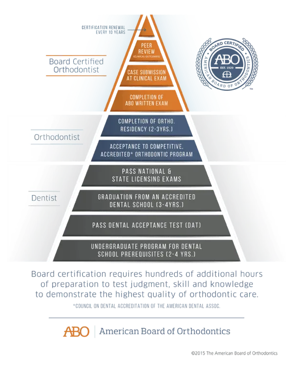 - Board Certified — Diplomate of the American Board of Orthodontics